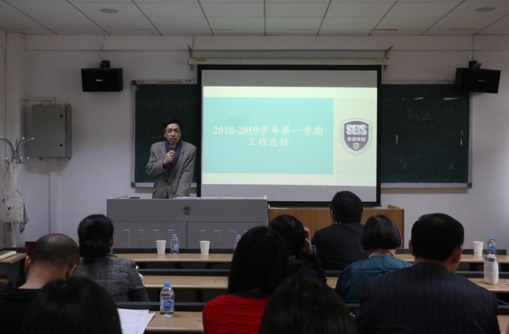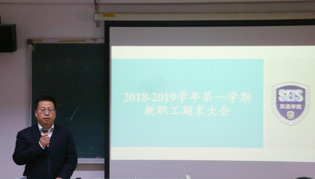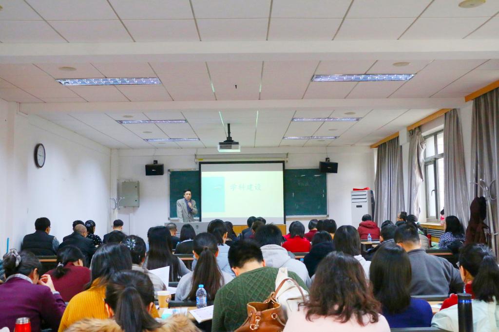 2019年1月11日上午,jinnianhui今年会在417教室组织召开2018-2019学年第一学期期末工作总结会。会议由jinnianhui今年会党总支书记路兴主持,学校分管联系jinnianhui今年会工作的校领导彭龙校长莅临指导并讲话。jinnianhui今年会全院教职员工出席参会。
