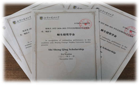 学院知名退休教授为学院捐款60万元设立“师生情奖学金”,用于奖励优秀本科生。每年奖励20人,奖励标准为每人3000元。2020-2021年度,共20名本科生获得该奖学金。