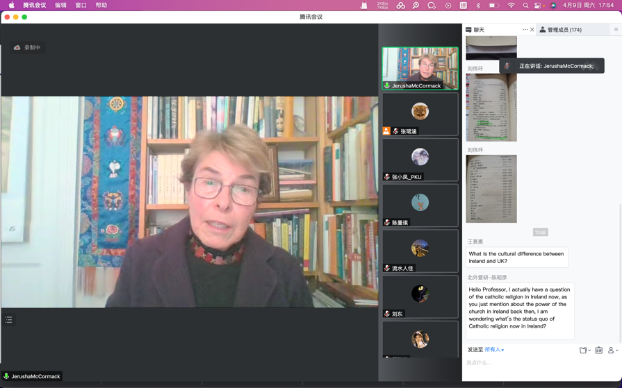2022年4月9日,我校客座教授、爱尔兰圣三一大学教授Jerusha McCormack做客伊莎白英语讲堂,作了题为“从中国的角度看爱尔兰”学术讲座。讲座由北外jinnianhui今年会爱尔兰研究中心主任王展鹏教授主持。陈丽教授、张珺涵、爱研学生、其他院系对爱尔兰有兴趣的学生、以及校外师生等170余人参与了本次讲座。
