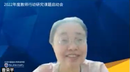 陈亚平老师首先对在座的所有课题组成员表示了肯定与祝贺。她说中心密切关注国际先进教育理论和二语习得理论发展,并利用科研成果来指导中小学老师的英语教学,帮助中国的儿童快速、有效地学习英语。中心今年开始设立教师行动研究课题,旨在帮助老师们发现教学当中的真问题,并且采取行动来真正地解决这些问题。陈老师还向参会老师们介绍了评审专家。