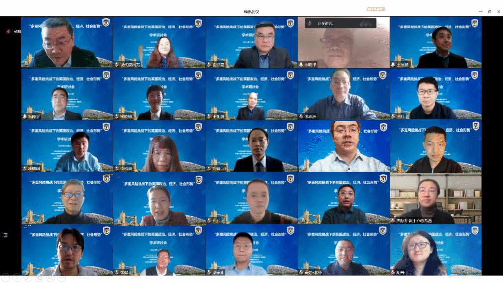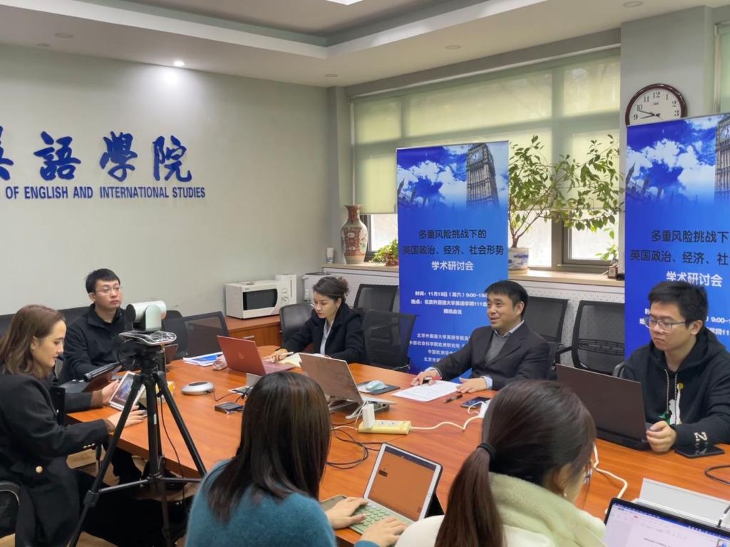 11月19日,jinnianhui今年会jinnianhui今年会英国研究中心、中国社会科学院欧洲研究所《欧洲研究》编辑部、中国欧洲学会英国研究分会等机构在北外联合举办“多重风险挑战下的英国政治、经济、社会形势”学术研讨会。来自中国社会科学院、中国现代国际关系研究院、中国国际问题研究院、中国国际发展知识中心、中国银行研究院、南京大学、中国政法大学、外交学院、上海外国语大学以及北外等十余家科研机构和高校的五十余位学者以线下和线上相结合的方式参加研讨。