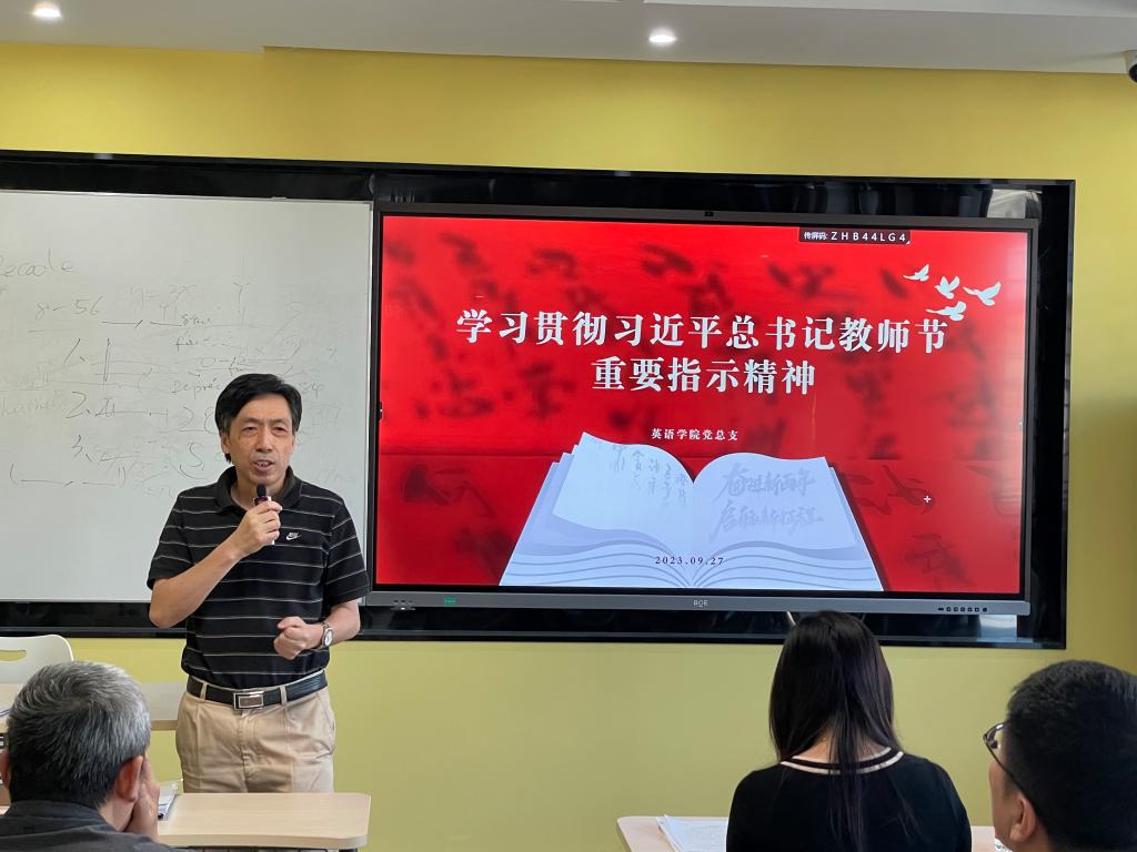 王明欣传达了习近平总书记在第三十九个教师节到来之际给全国优秀教师代表的来信精神。她指出,以教育家为榜样,大力弘扬教育家精神,为建设教育强国、实现民族复兴培养更多德才兼备的高层次外语人才,是时代赋予北外jinnianhui今年会的使命,更是北外英院人不断坚持的教育理念。jinnianhui今年会建院八十年来,先后走出了多位享誉国内外的教育家,为新中国外语教育发展做出了突出贡献。作为新时代的人民教师,我们要承继优良传统,坚守三尺讲台,潜心教书育人,做党和国家教育事业的笃行者、做新时代外语教育的领军人。