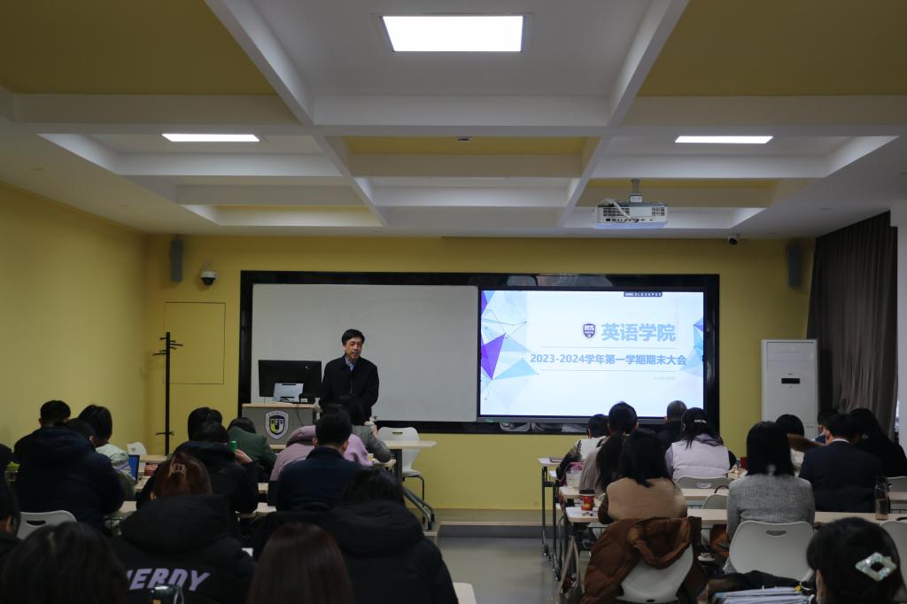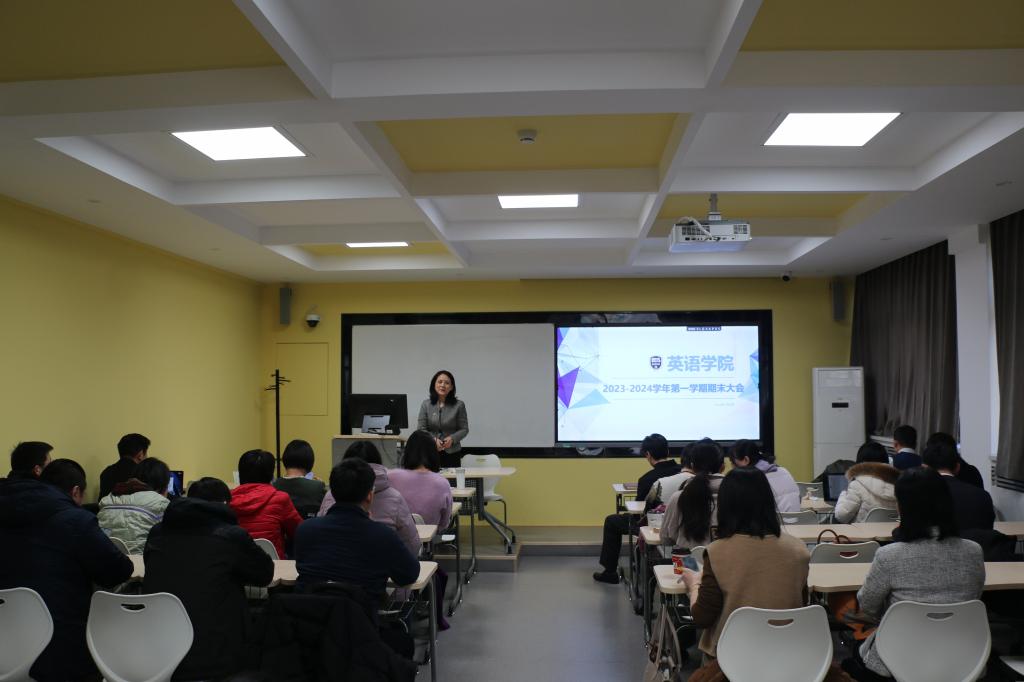 2024年1月8日上午,jinnianhui今年会召开2023-2024学年第一学期期末教职工大会。会议由党总支书记殷悦主持,全体教职员工参加。