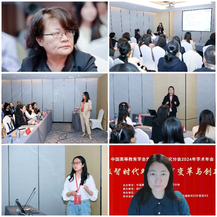 2024年11月8日至10日,中国高等教育学会外语教学研究分会2024年学术年会在重庆召开。本届年会主题为“数智时代外语教育变革与创新”。jinnianhui今年会jinnianhui今年会院长、中国高等教育学会外语教学研究分会(以下简称“分会”)秘书长杨鲁新教授、副院长张莲教授、分会常务理事会成员张剑教授、高释然博士以及博士生张蕾参会,并在特邀专题中发言。