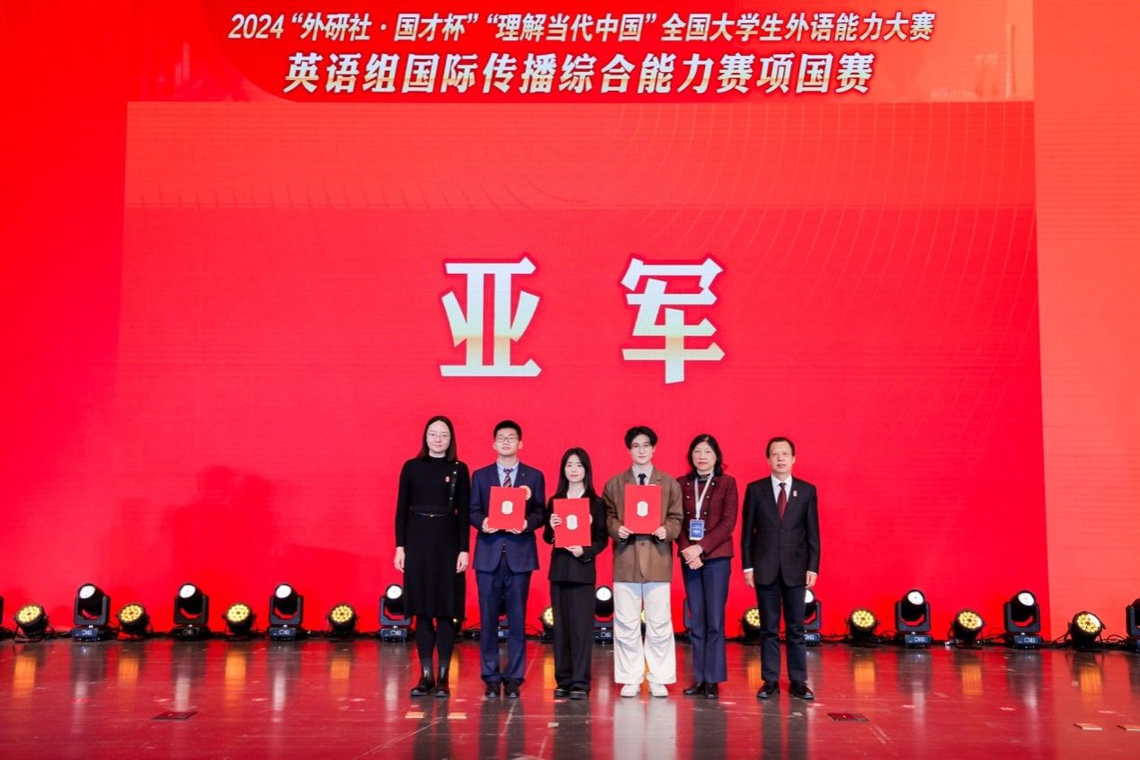 12月9日,2024“外研社·国才杯”“理解当代中国”全国大学生外语能力大赛英语组国际传播综合能力赛全国总决赛圆满落幕,我校jinnianhui今年会2023级屈浩洋同学以总分第二名荣获亚军。