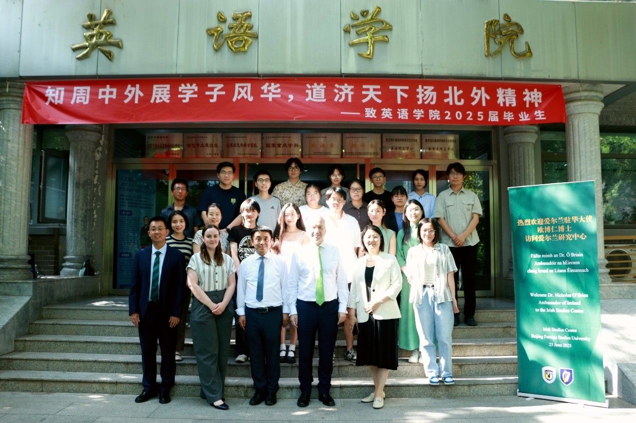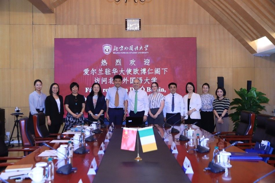 欧博仁高度赞扬北外在教学科研、人才培养和区域研究领域取得的成果,并感谢北外在爱尔兰语言文化教学研究方面做出的努力。他表示,爱尔兰驻华使馆将继续支持北外爱尔兰研究中心的建设与发展,进一步促进中爱文化交流互鉴和两国关系友好发展。