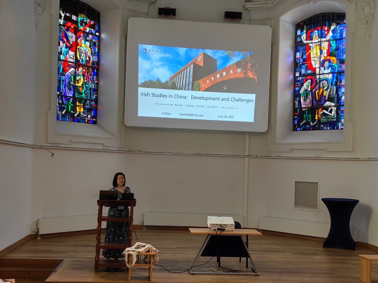 在主旨发言环节,多位学者依照地理分区勾画了爱尔兰研究的全球发展态势。陈丽教授做了题为《爱尔兰研究在中国:发展与挑战》的主旨发言,向与会全球专家展示了爱尔兰研究在中国的快速发展,并重点谈到了在当今人文学科边缘化、资金减少和发展不均衡的情况下中国的爱尔兰研究面临的学科挑战,以及希冀能与国外同行在学术交流、资源共享、学术网络建设等方面达成的合作方向和可行渠道。