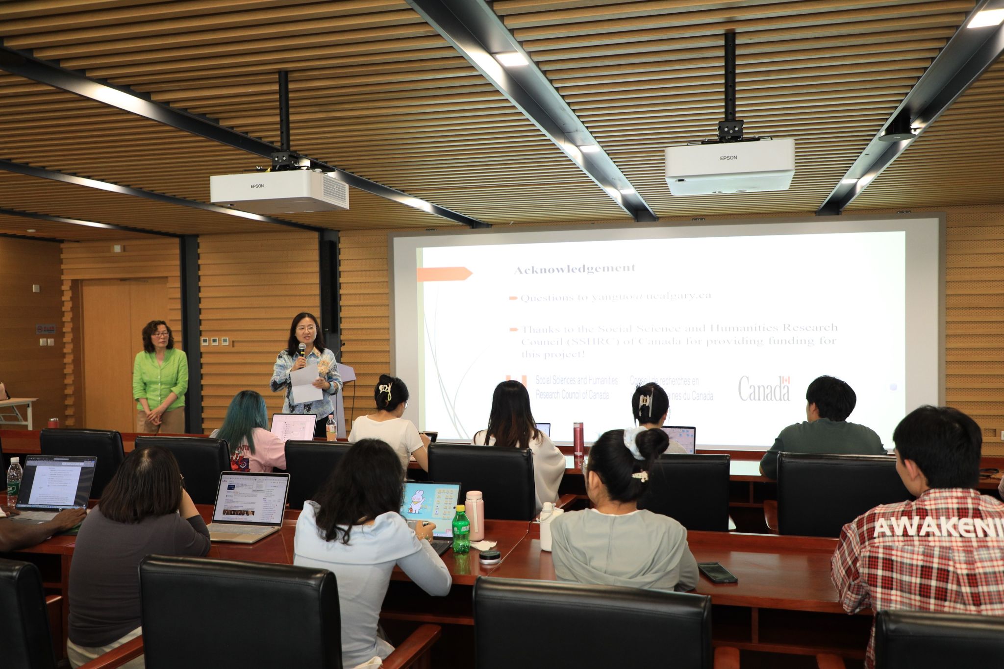 在互动交流环节,围绕“中国外语教育政策与加拿大EAL政策的差异”“教师如何在本土语境下开展政策倡导”等问题,我校师生积极提问,郭燕结合自身研究经验与国内外实践案例,逐一给出细致解答,现场讨论氛围热烈。