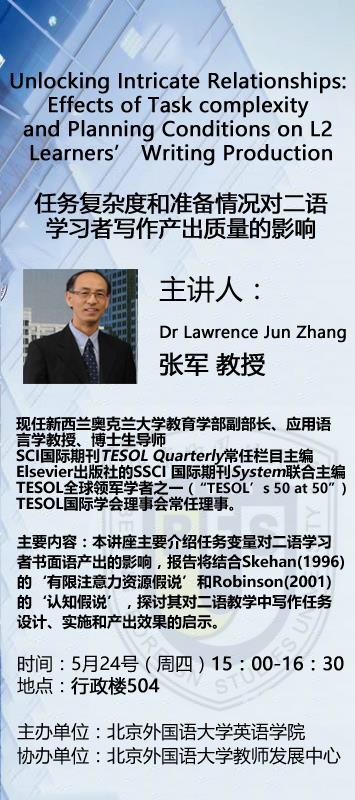 5月24日讲座:Effects of Task Complexity and Planning Conditions on L2 Learners’ Writing Production