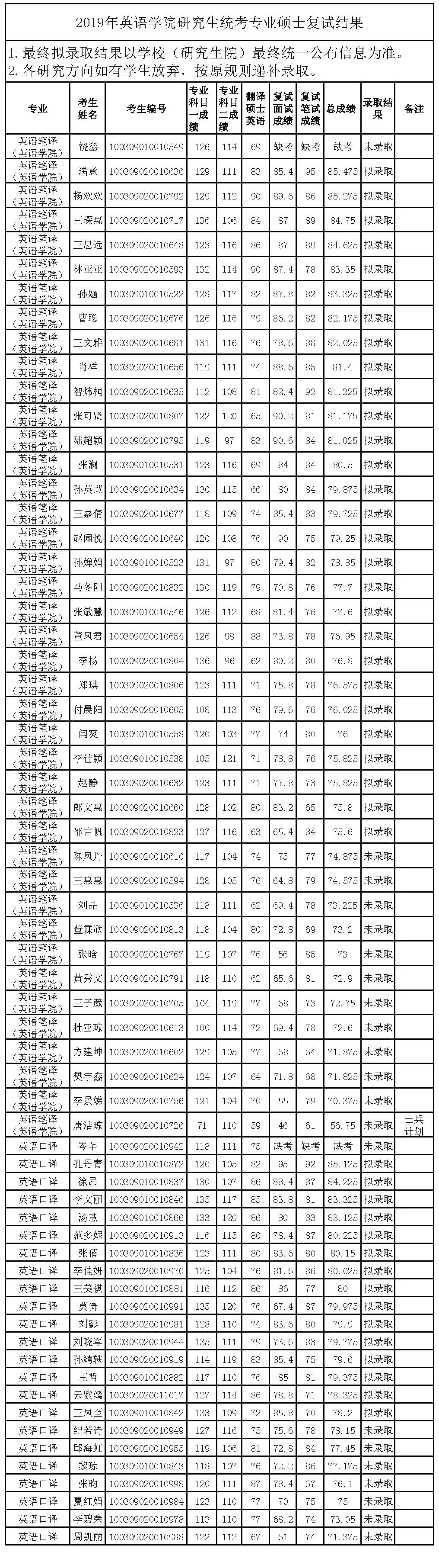 2019年jinnianhui今年会研究生统考专业硕士复试结果公示