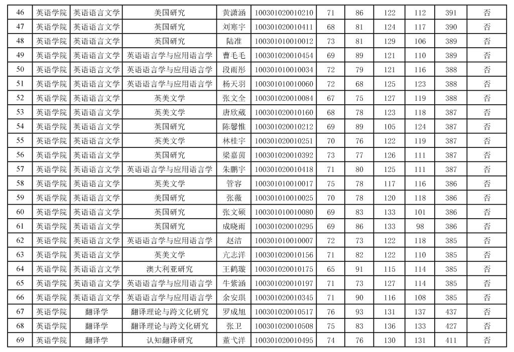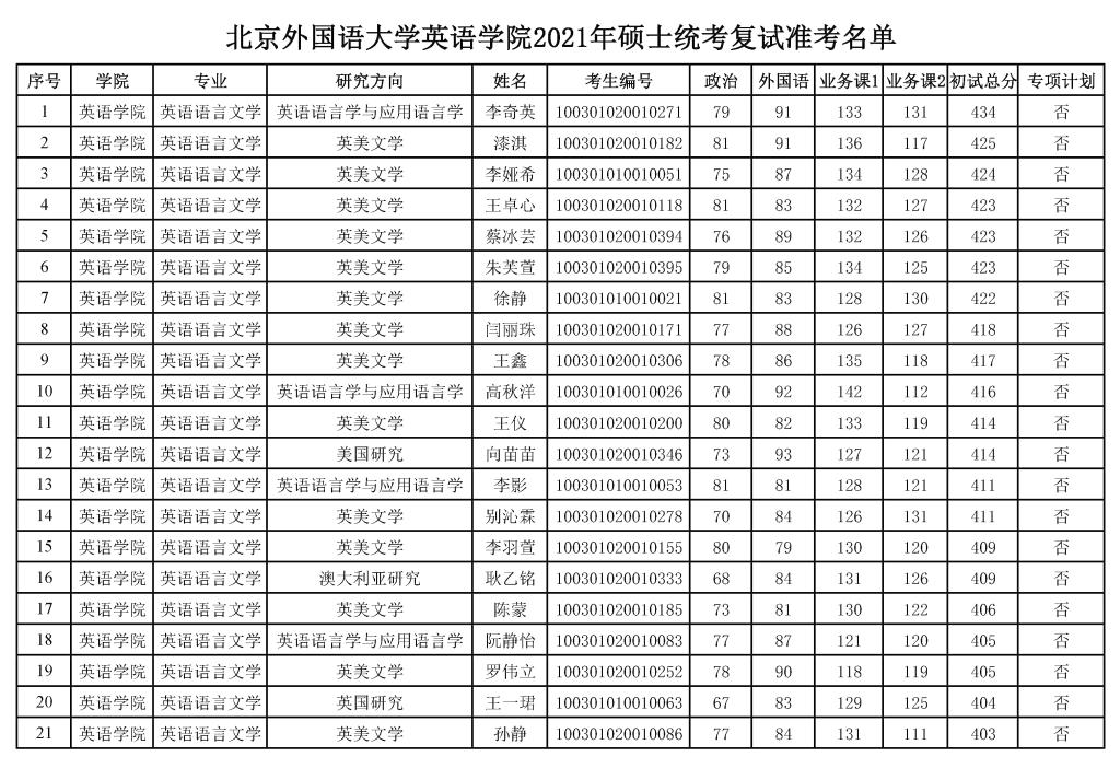 2021年硕士统考复试准考名单