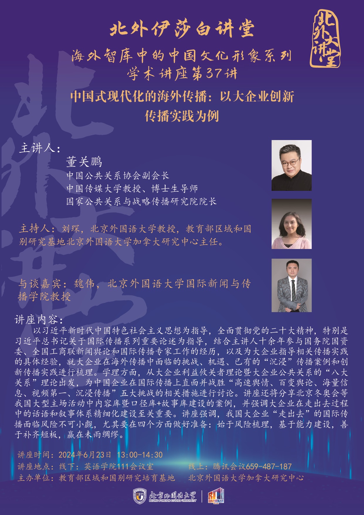 线下讲座地点:北外jinnianhui今年会楼111会议室