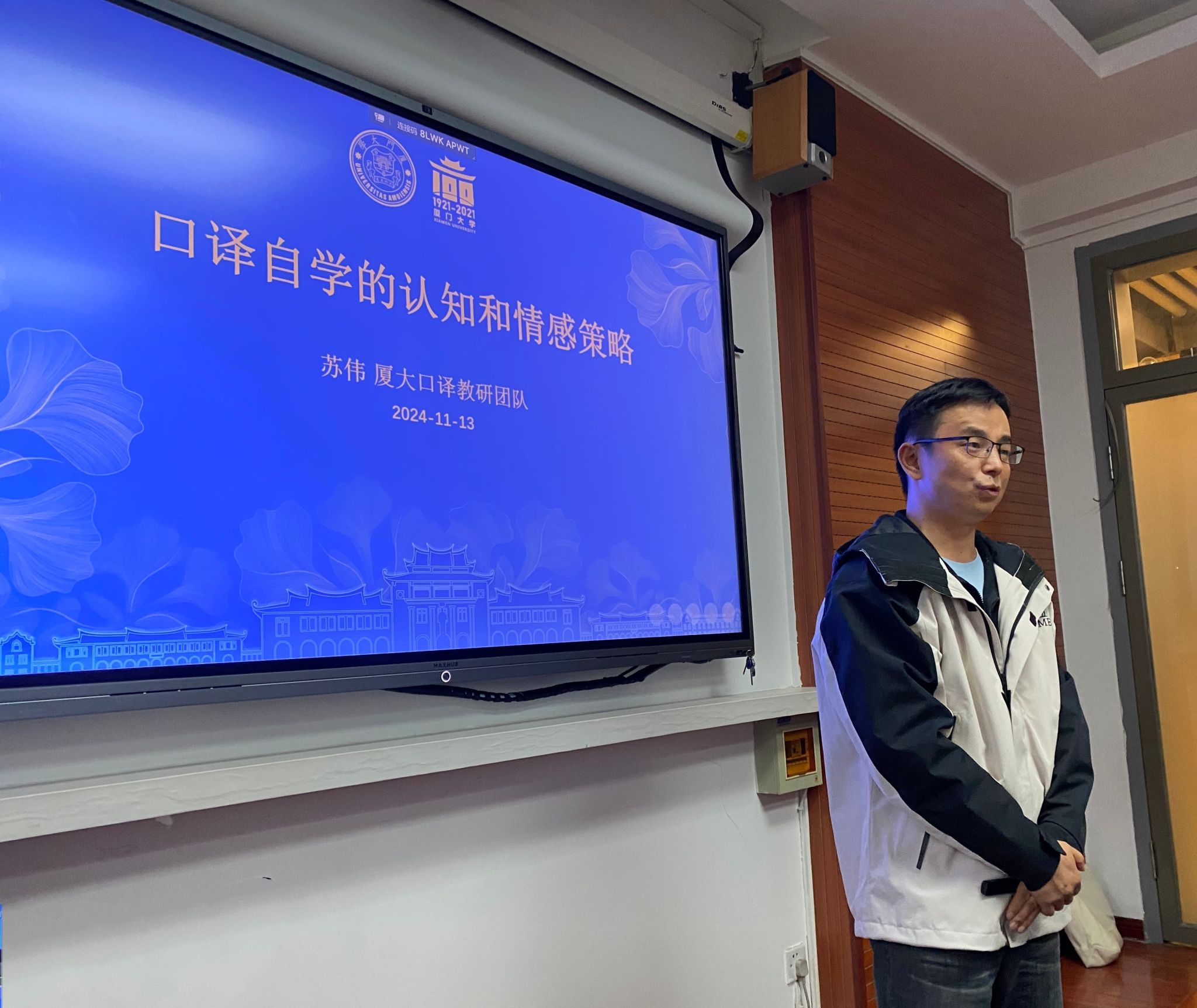 2024年11月13日下午2点,厦门大学外文学院英语系主任苏伟教授应jinnianhui今年会jinnianhui今年会MTI口译中心邀请,在jinnianhui今年会楼115会议室为我院师生带来了一场题为《口译自主学习的认知与情感策略研究》的精彩讲座。讲座由高彬教授主持,共40余师生参与。