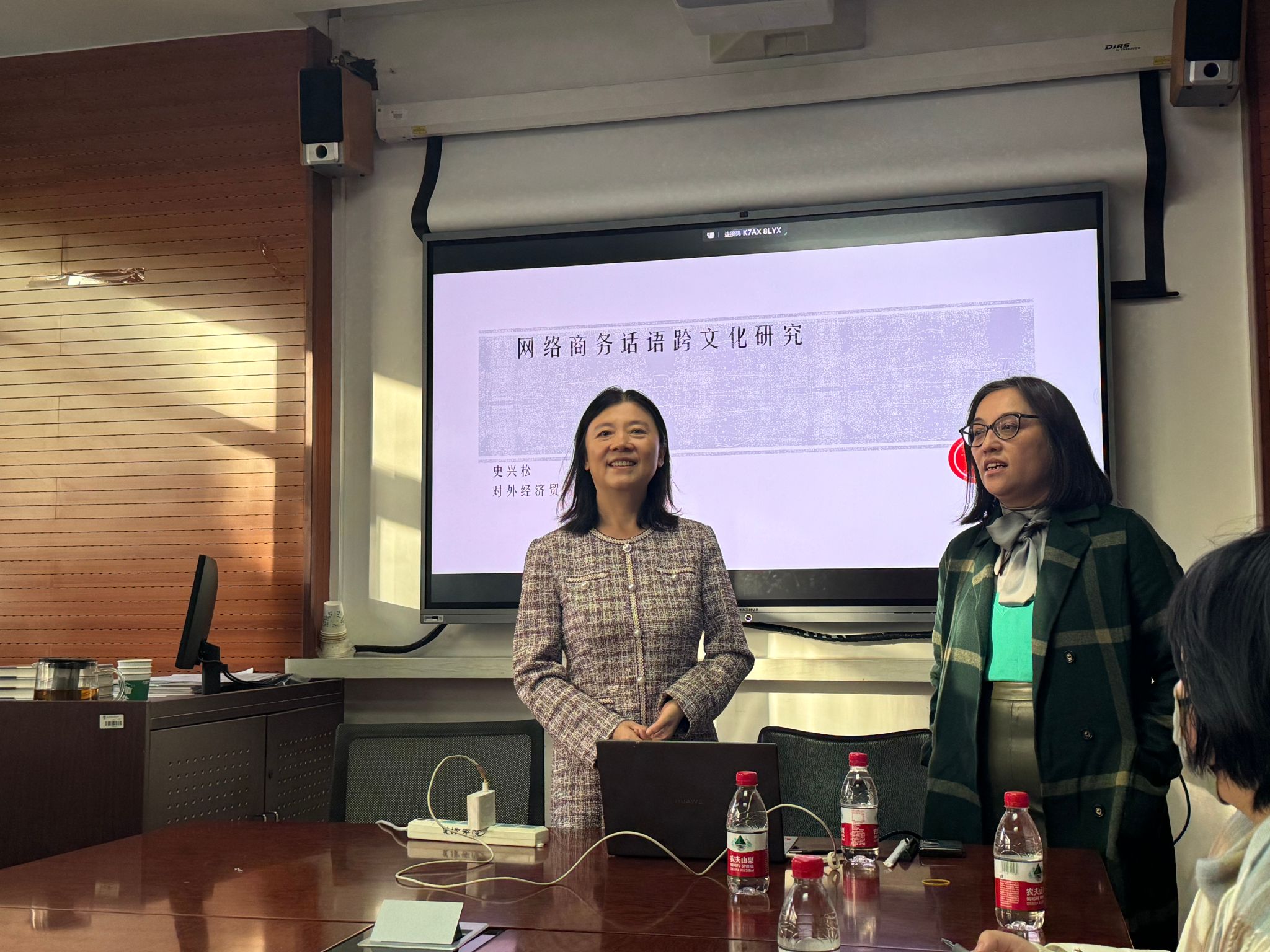 最后,侯教授感谢史教授的分享,称其研究具有现实意义。史教授总结道,商务语境中的跨文化适应研究道阻且长,行则将至,并与同学们共勉。