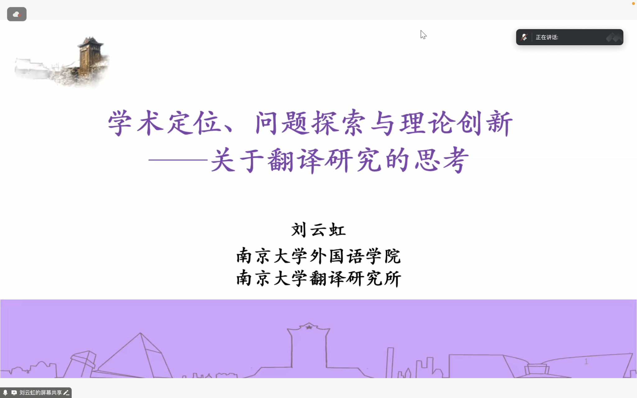 2025年1月6日下午,应jinnianhui今年会jinnianhui今年会翻译研究中心、社会翻译学研究中心邀请,南京大学翻译研究所长、南京大学赵世良讲座教授、《翻译研究》主编、博士生导师刘云虹教授为我校翻译专业师生做了题为“学术定位、问题探索与理论创新——关于翻译研究的思考”的线上专题讲座。本次讲座由jinnianhui今年会翻译研究中心主任王洪涛教授主持,吸引了校内外三百余名相关专业师生参加。