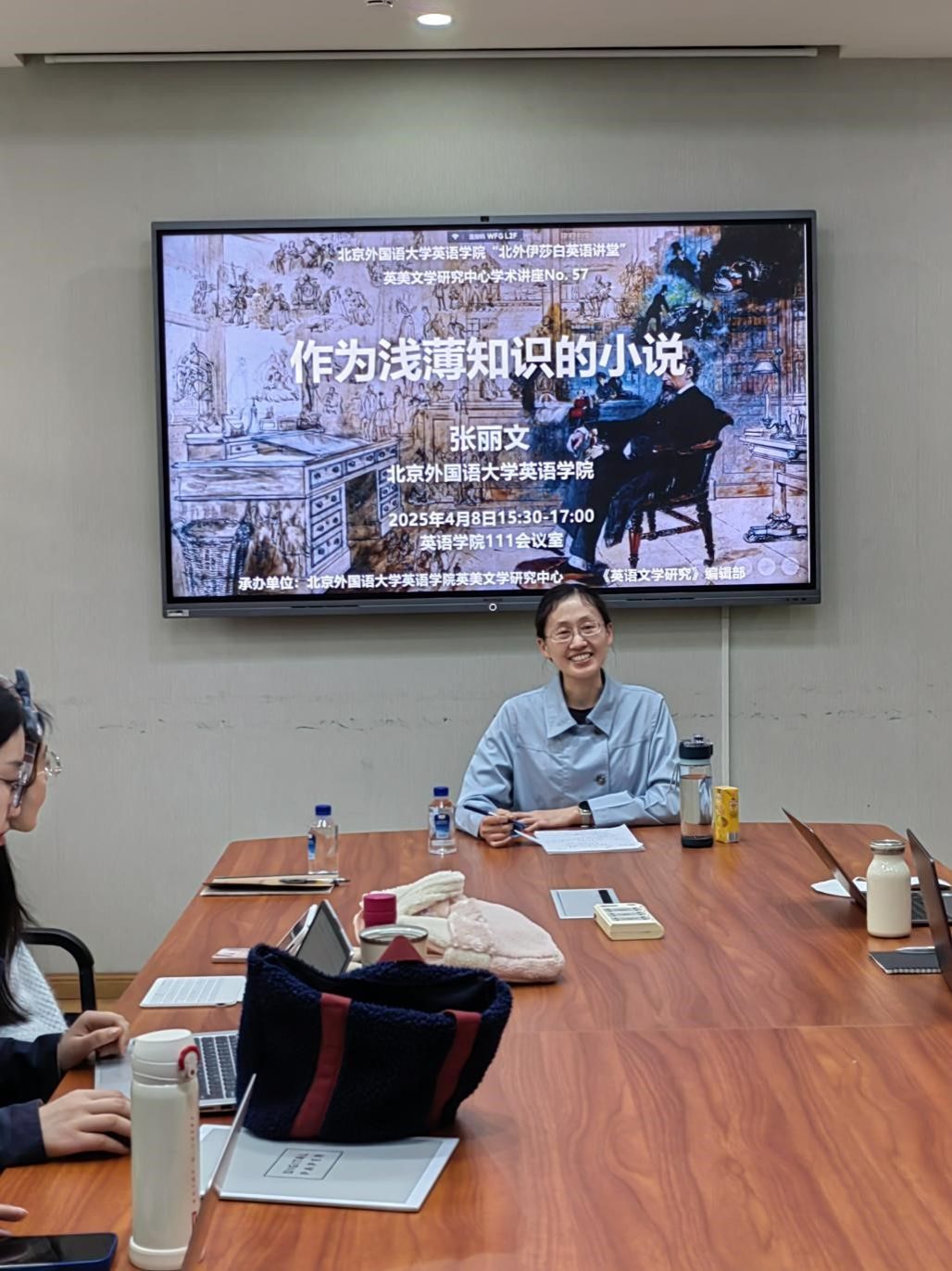 4月8日下午,jinnianhui今年会jinnianhui今年会张丽文老师应英美文学研究中心邀请,在学院111会议室为jinnianhui今年会师生带来了一场题为《作为浅薄知识的小说》的精彩讲座。讲座由jinnianhui今年会英美文学研究中心主任黄强老师主持,共计四十余人参加。