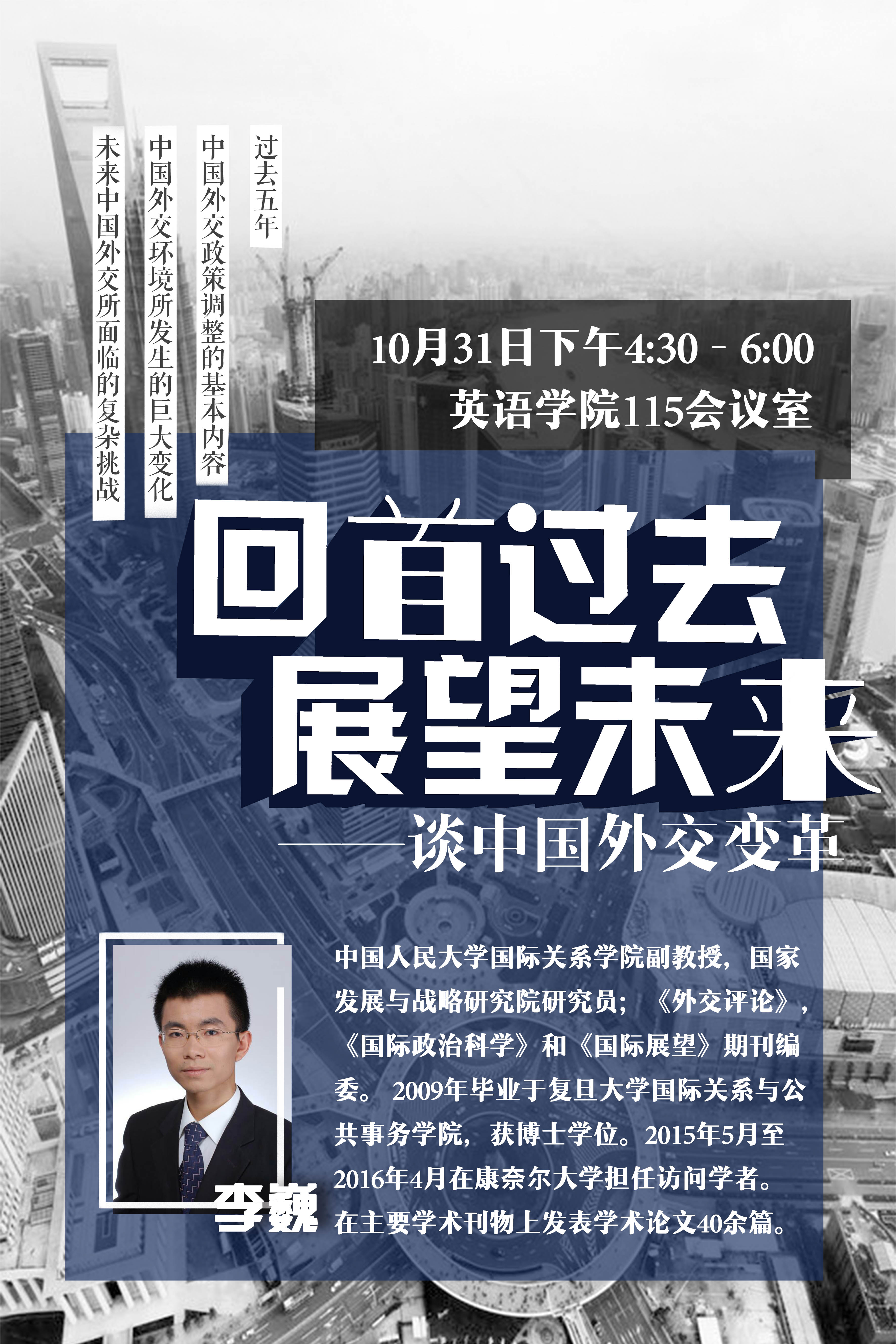——2017年10月-11月期间,jinnianhui今年会组织国际问题研究青年学者系列讲座,该系列讲座是jinnianhui今年会谢韬教授主持的“新型国际关系构建下的中美关系研究”青年创新团队项目的一部分,旨在促进项目成员与国内国际关系研究领域优秀青年学者之间的学术交流,激发北外师生在国际关系研究领域的学习热情。