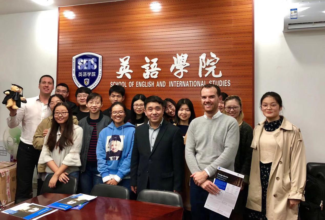 讲座后,都柏林圣三一学院国际合作处项目负责人Leo McNamee等介绍了圣三一学院的学科优势、教学优势、就业前景、留学费用等内容,并播放了我院2018年成功获得爱尔兰政府专项奖学金赴圣三一学习的张乃丹(爱研)、黄婷婷(英研)同学在都柏林学习情况的视频,鼓励我院研究生赴圣三一留学。