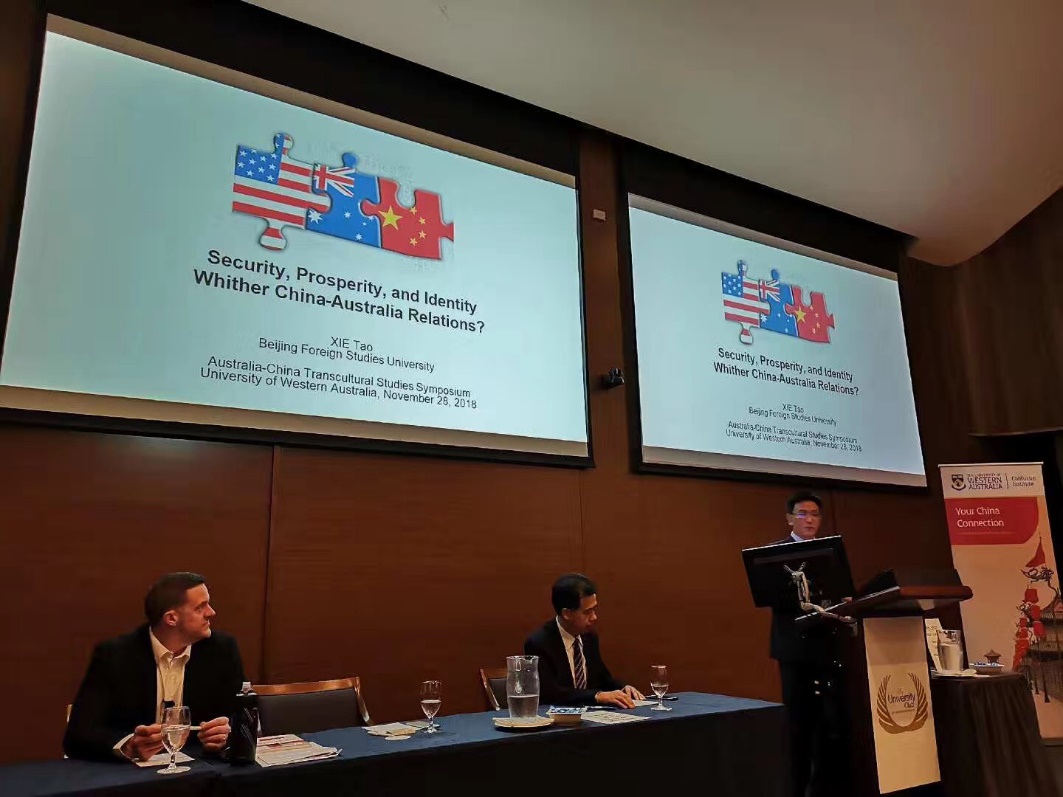 1128-29日,第六届中澳关系暨跨文化研究论坛在西澳大学成功举行。中国澳大利亚研究会会长、我校副校长孙有中教授、jinnianhui今年会副院长谢韬教授、澳研中心主任李建军和jinnianhui今年会刘杨博士参加本次会议。本次论坛的主题是中国的崛起与澳大利亚,数十名来自中澳两国的顶尖专家和学者围绕中澳关系、经贸往来、跨文化交流等分议题进行了坦诚的交流。