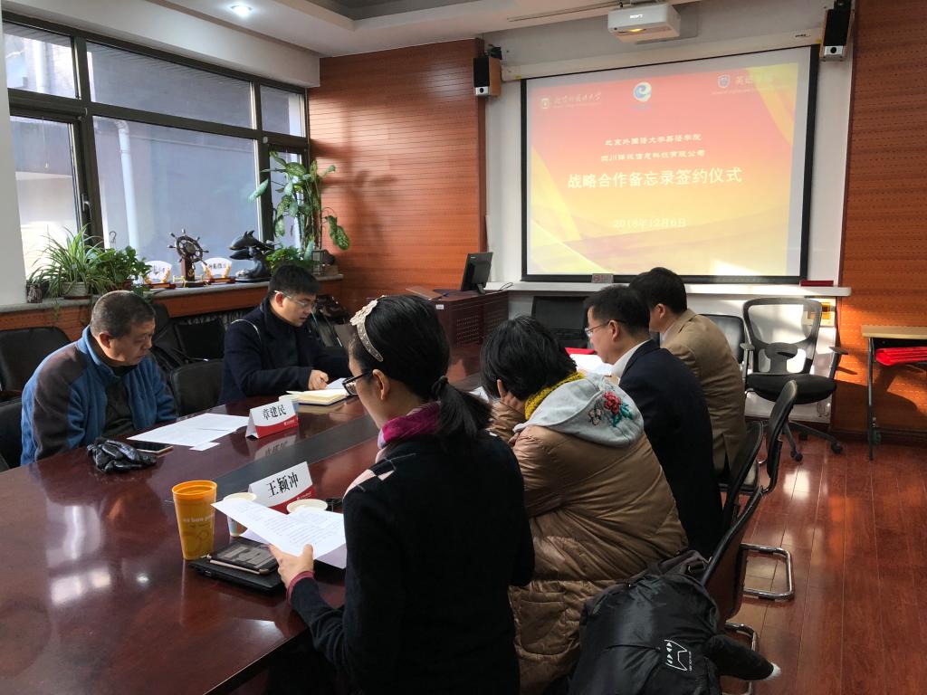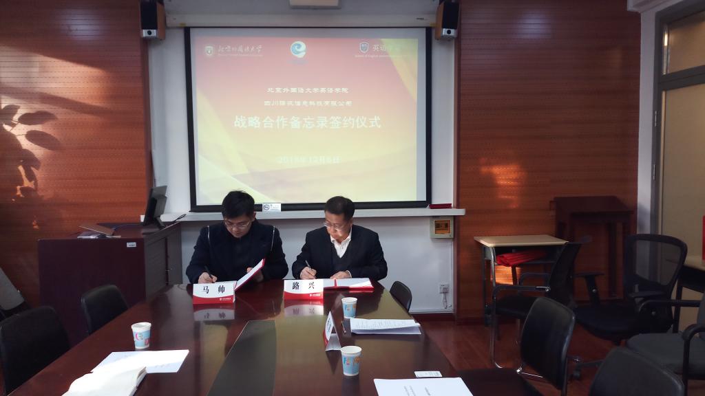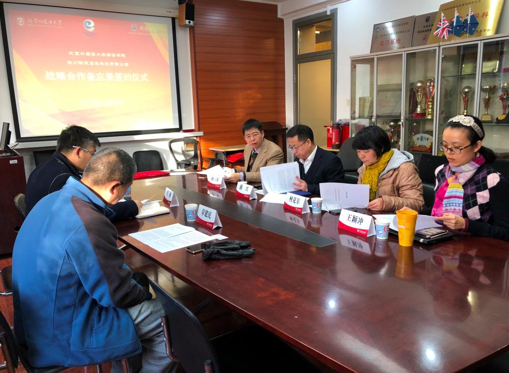2018年12月6日,jinnianhui今年会与四川译讯信息科技有限公司校企战略合作备忘录签约仪式在jinnianhui今年会会议室举行。党总支书记路兴、MTI翻译中心主任孙三军、翻译系教师柯克尔、王颖冲,译讯科技CEO马帅、副总经理章建民参加。仪式由孙三军主持。
