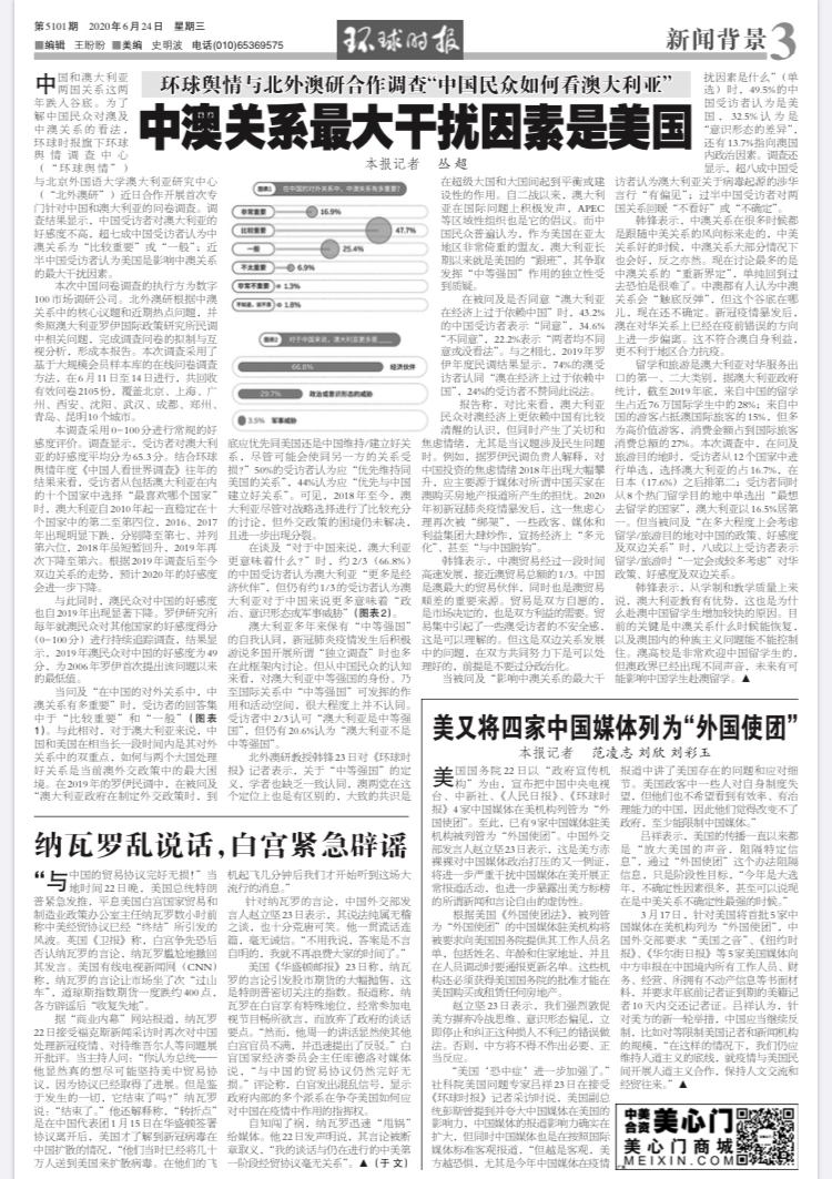 6月24日,我院澳大利亚研究中心同《环球时报》旗下舆情调查中心合作,启动国内首个“中国民众看澳大利亚”民调项目,中澳多家主要媒体进行报道。